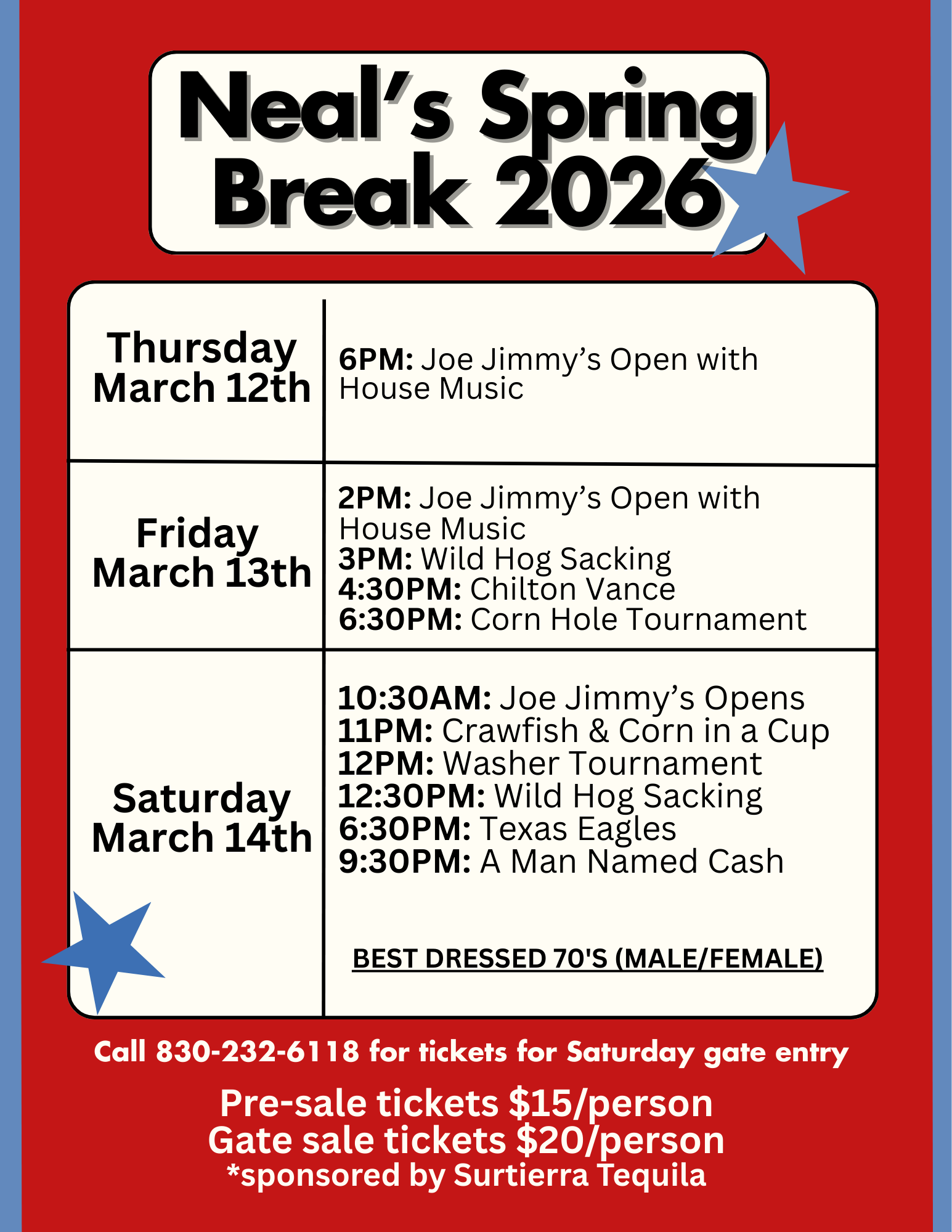 Neal’s is a family-owned & operated vacation spot on the Frio River and is open year-round.